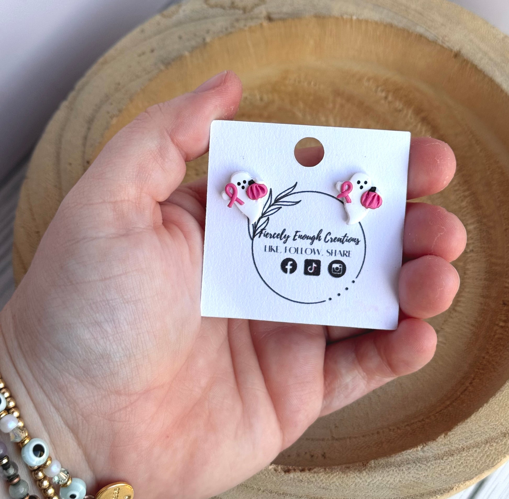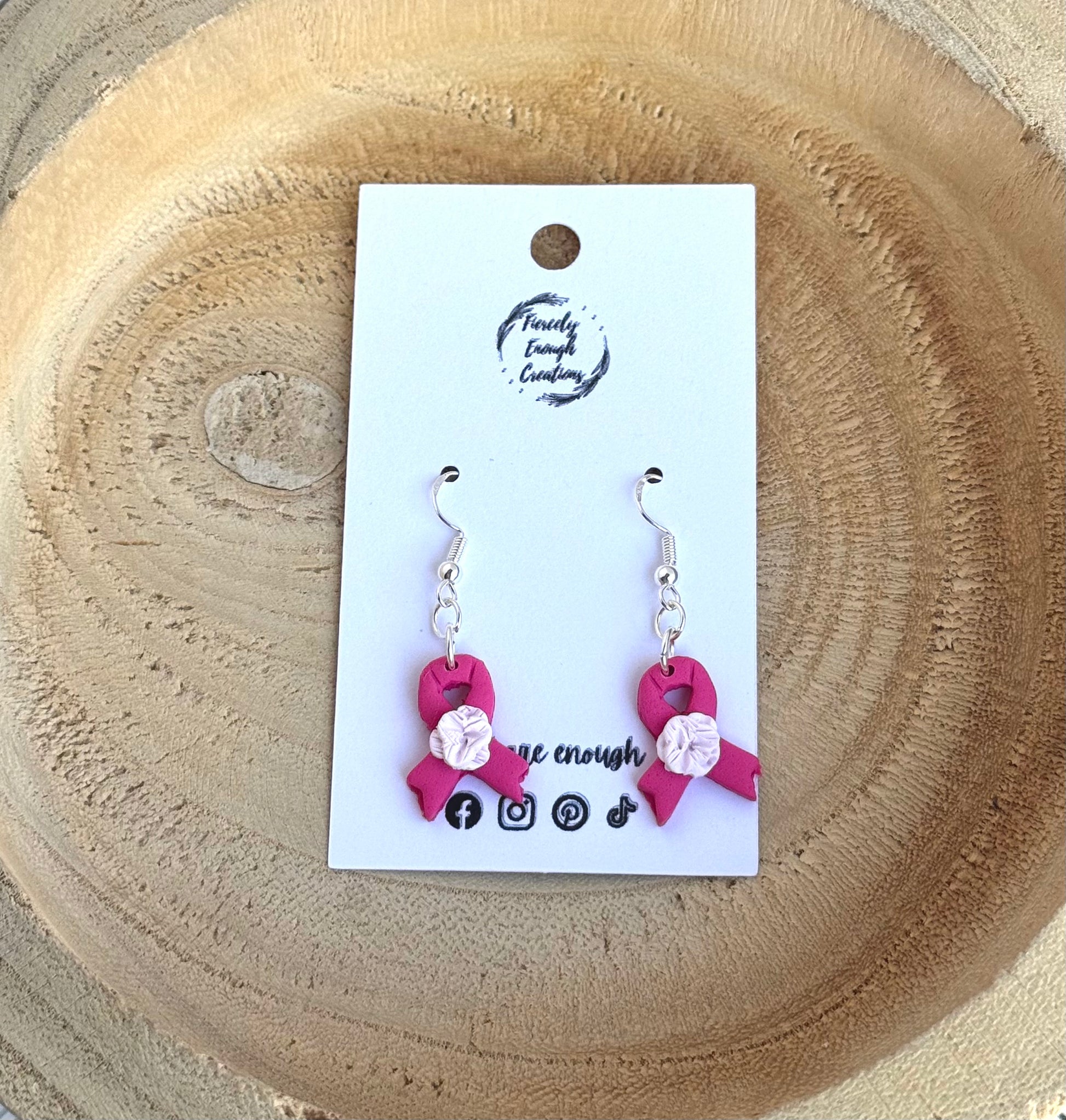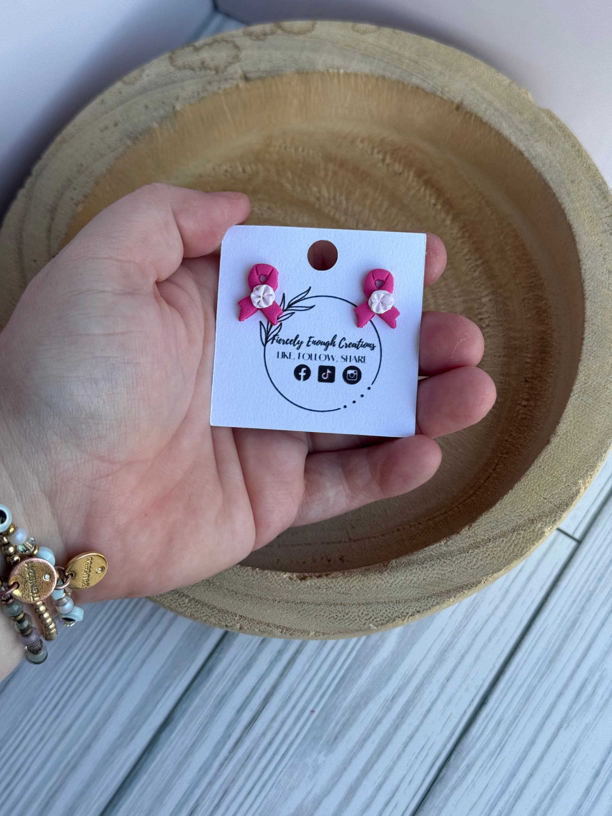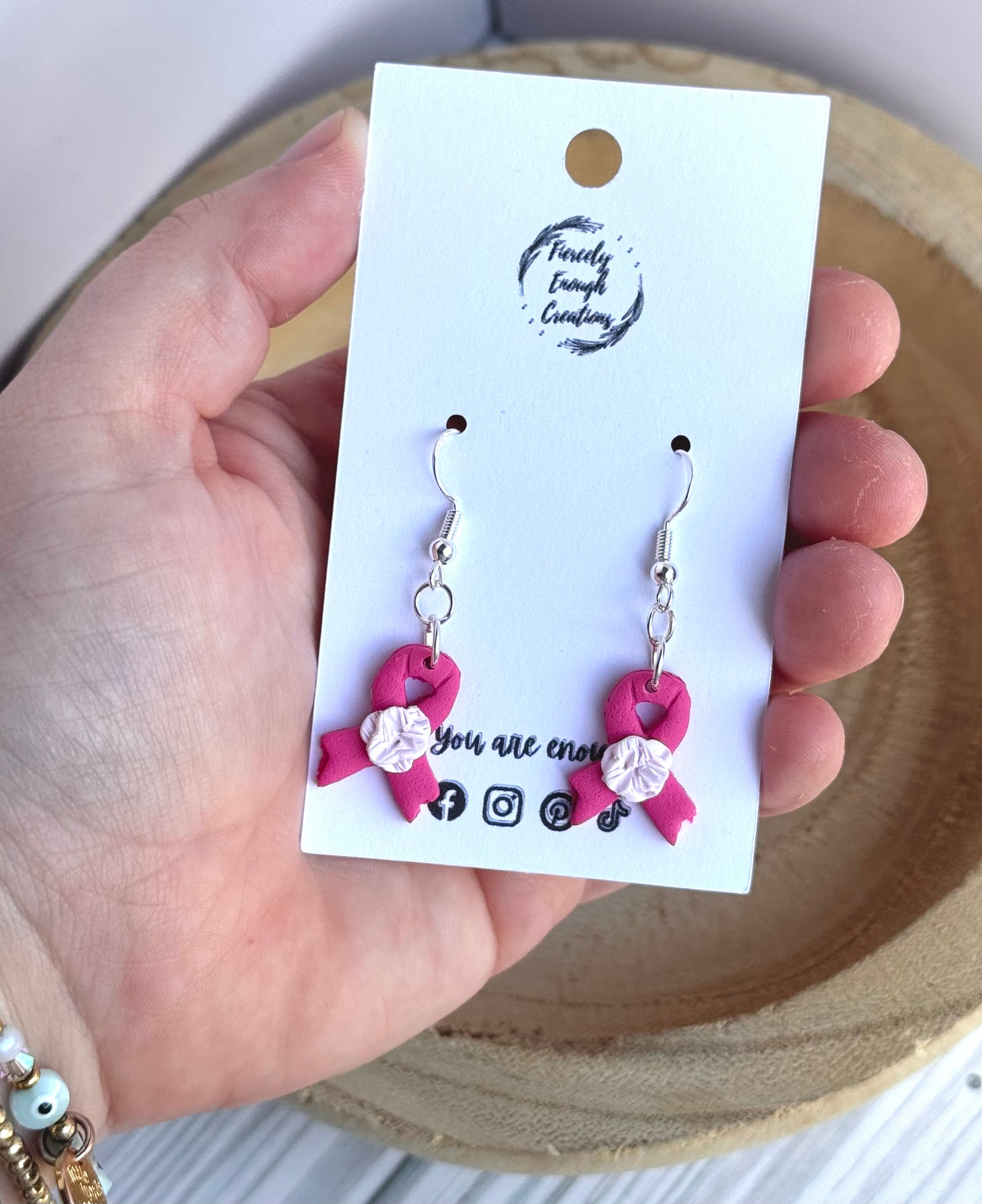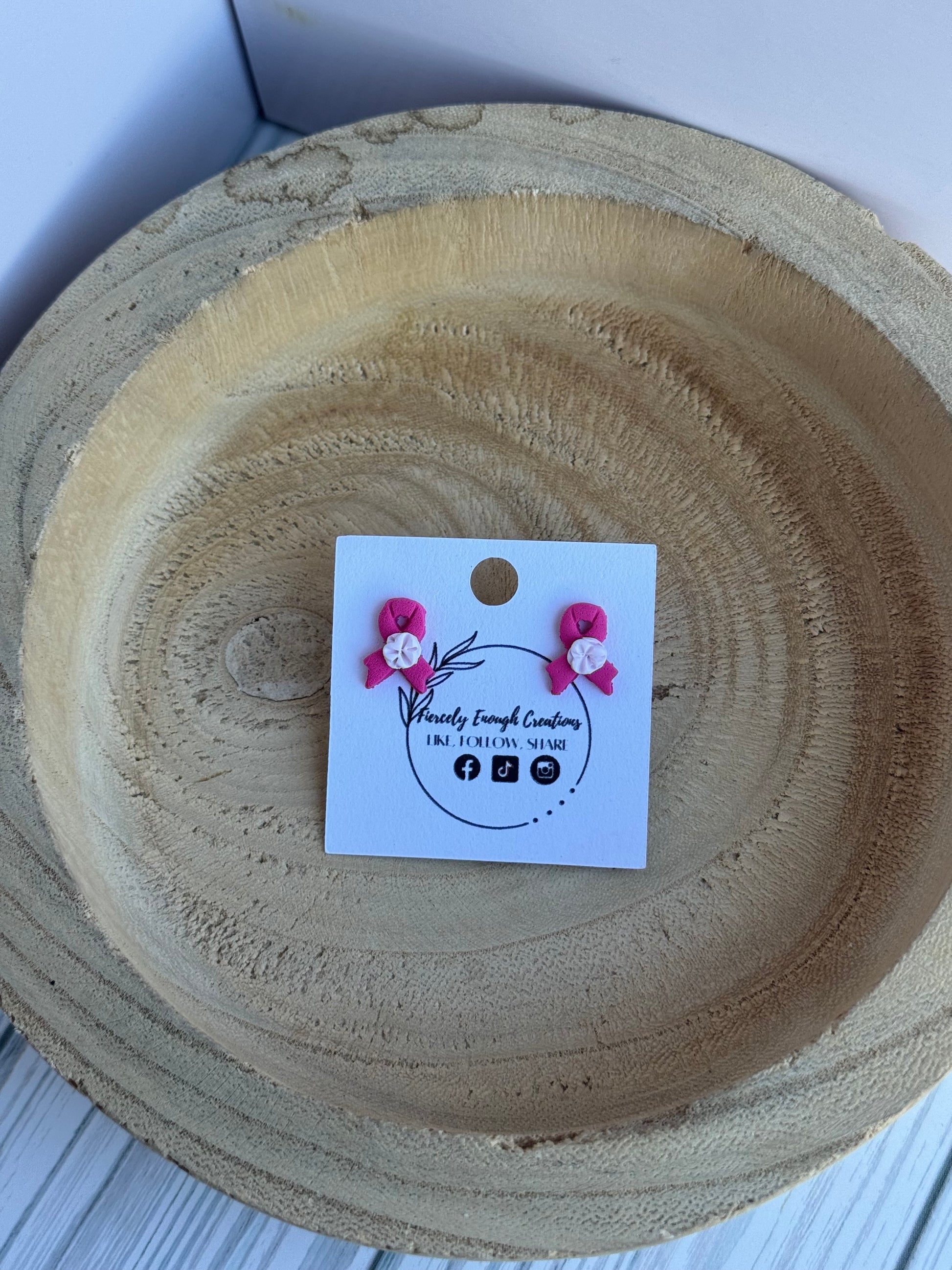 Show your support for breast cancer awareness with these beautifully handmade clay earrings. Lightweight and hypoallergenic, they provide comfortable wear for sensitive ears while making a meaningful statement. Crafted with care, these earrings are a perfect way to combine style and purpose, helping you raise awareness wherever you go.