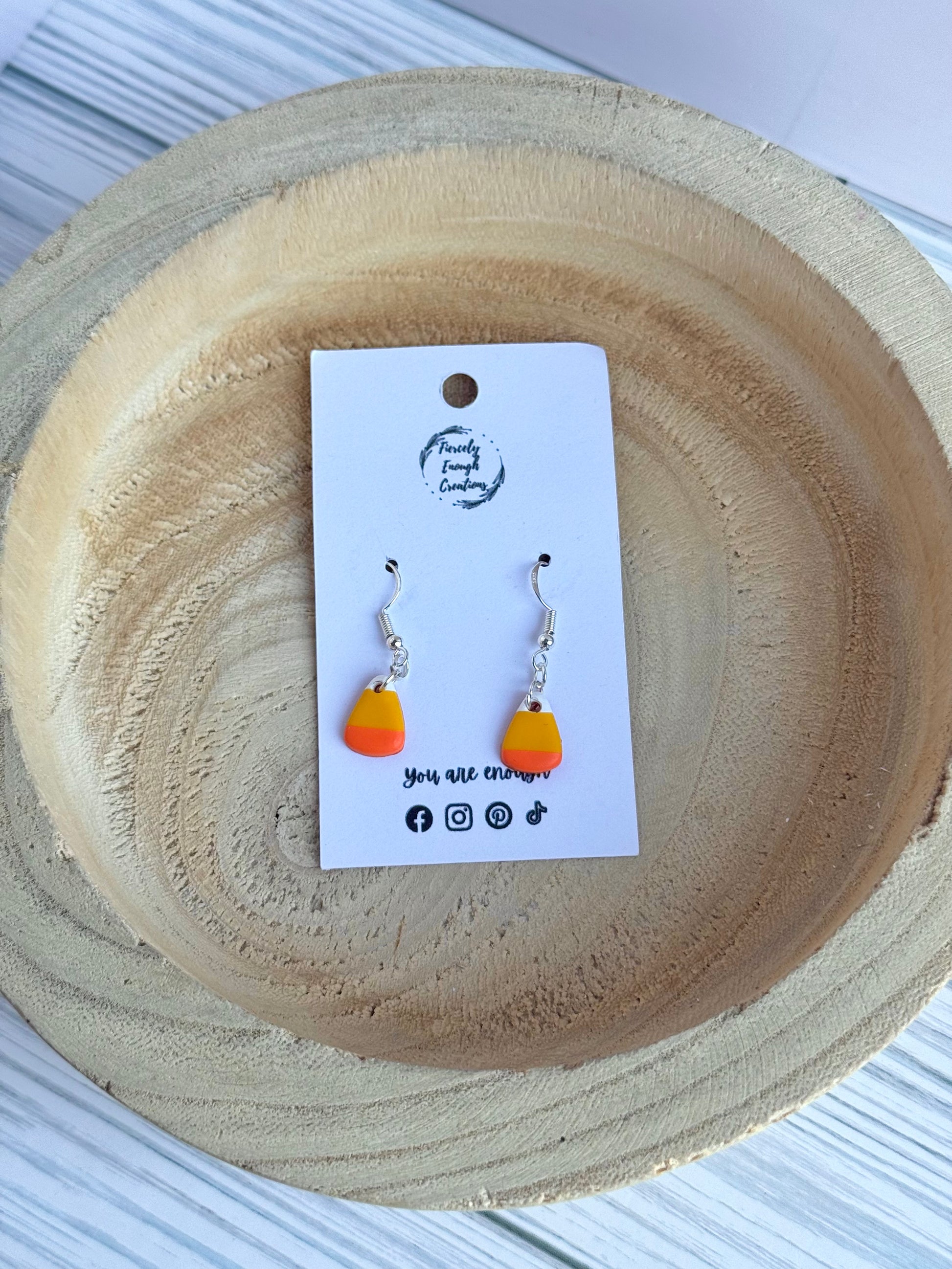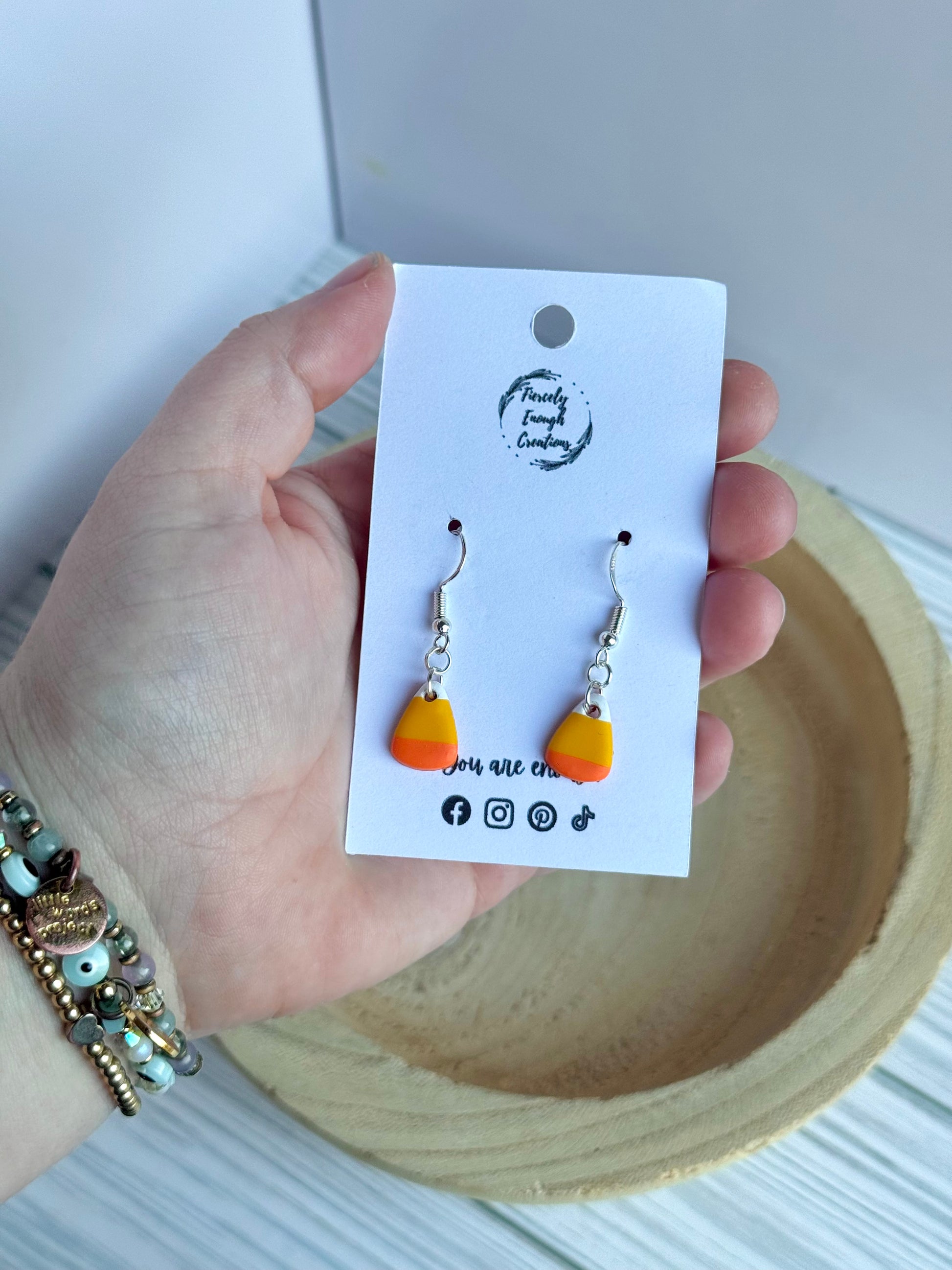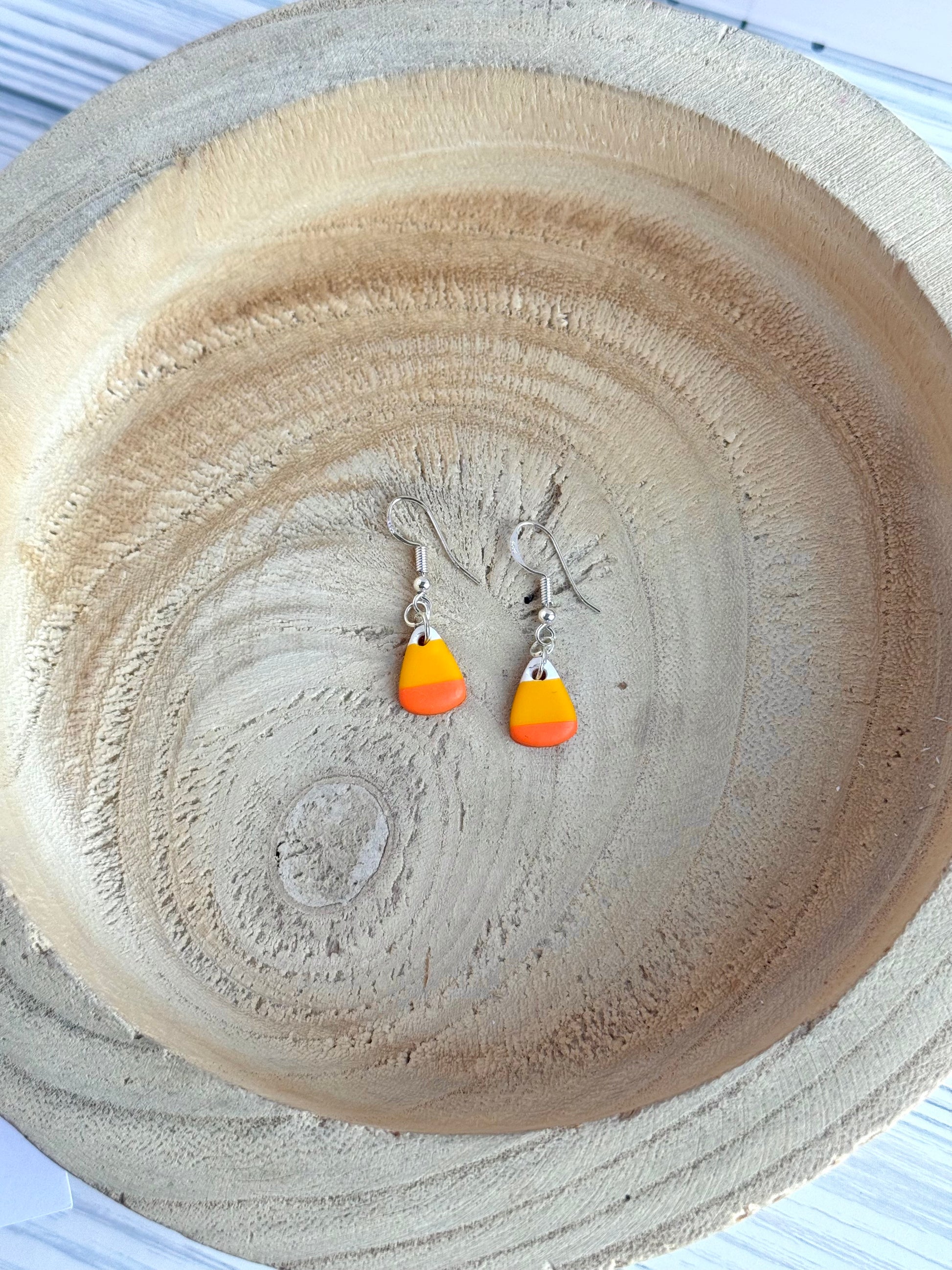 Get into the Halloween spirit with these handmade Candy Corn clay earrings. Lightweight and comfortable, they add a festive, playful touch to your fall wardrobe. Perfect for celebrating the season with style while enjoying all-day wearability.