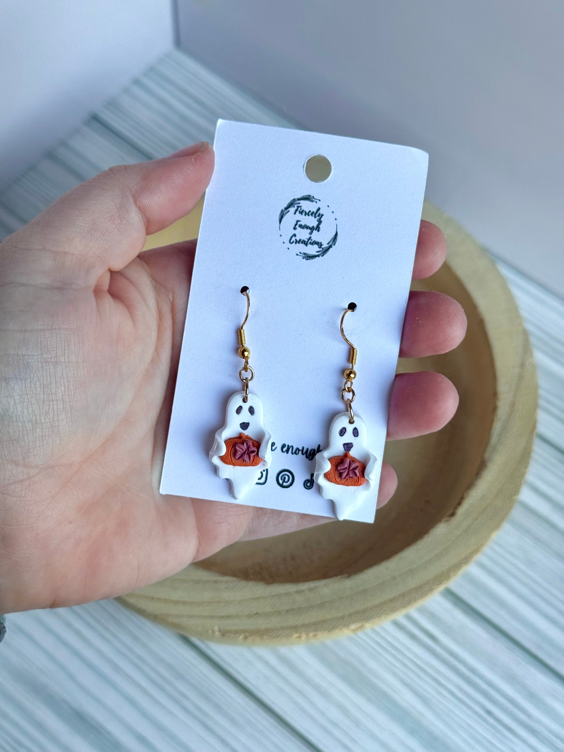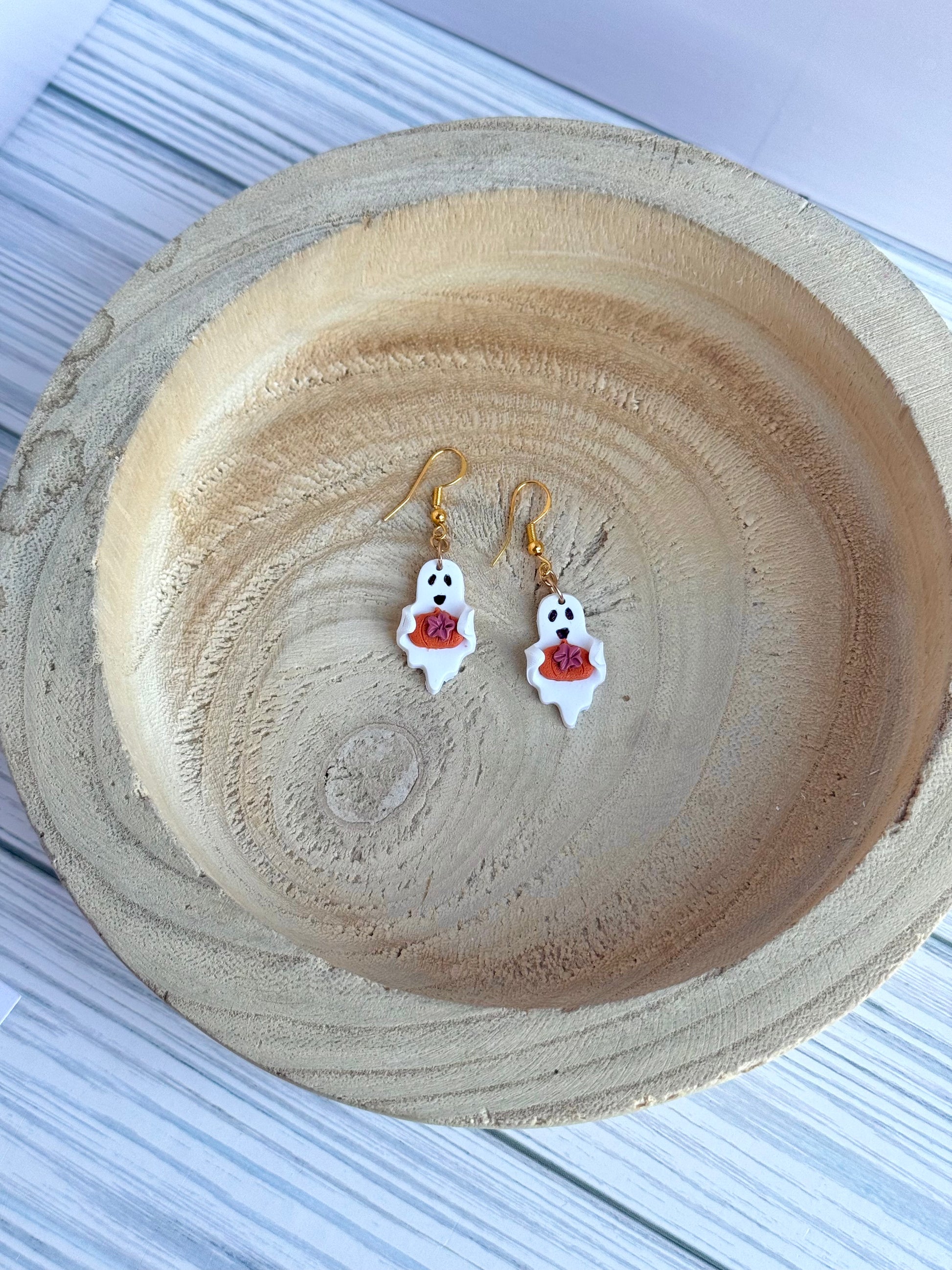 Embrace spooky season with these handmade "I'm Just a Ghoul" clay earrings. Lightweight and hypoallergenic, they offer comfortable wear while adding a playful Halloween touch to your fall wardrobe. Perfect for celebrating the season with charm and ease.