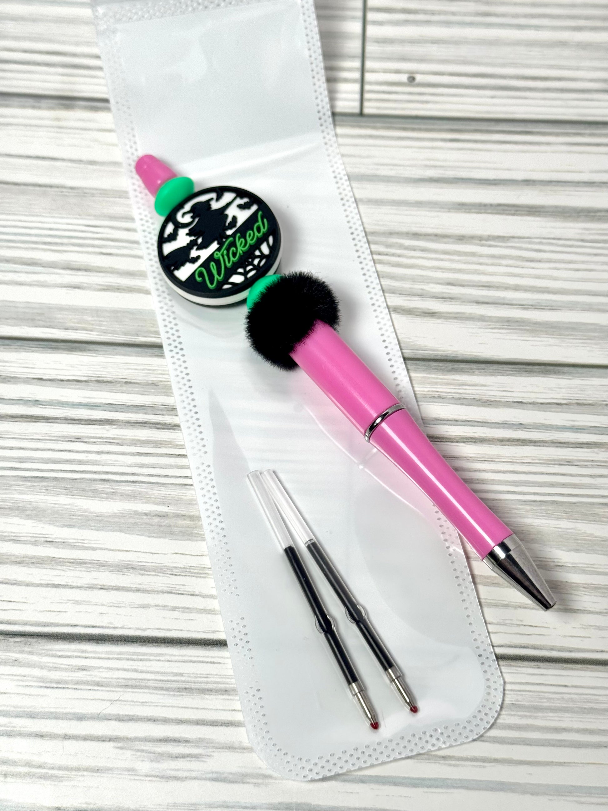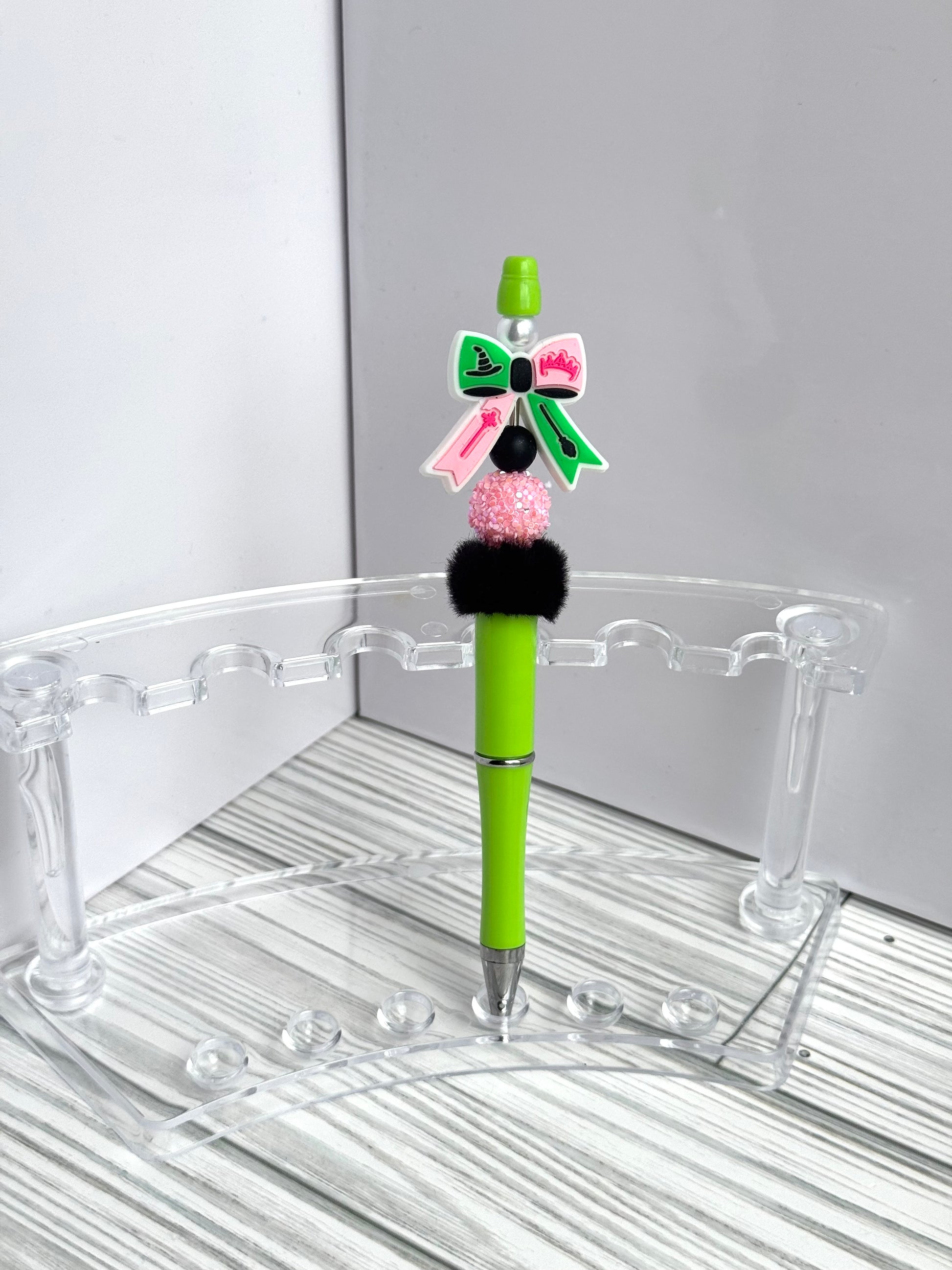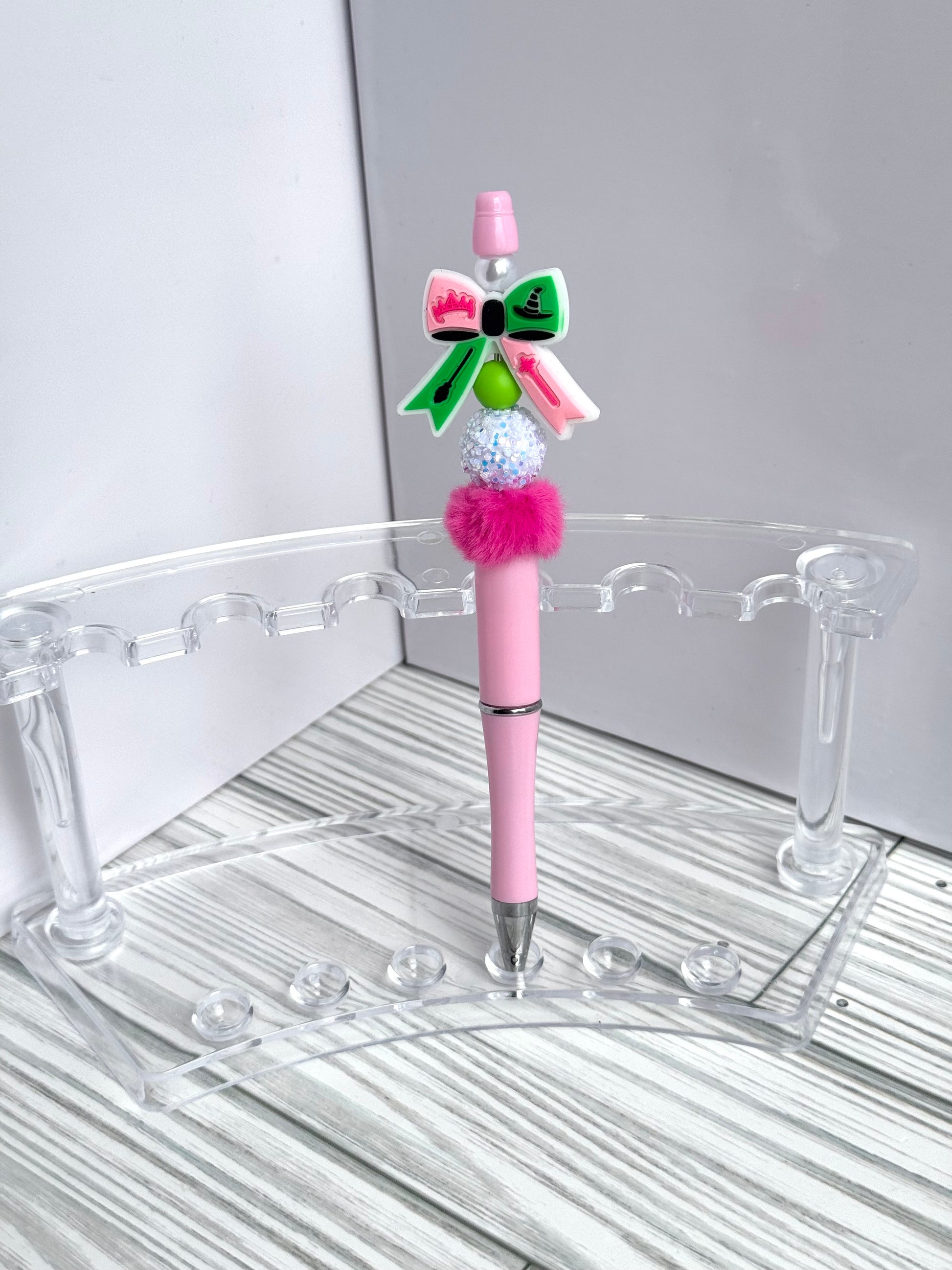 Celebrate the magical friendship of Elphaba and Glinda with this handcrafted "Pink goes good with Green" beaded pens. Inspired by the beloved musical Wicked, each pen features a stunning arrangement of pink and green beads, symbolizing how beautifully opposites can complement each other. This unique writing instrument brings Broadway magic to your everyday tasks while serving as a heartfelt reminder that unexpected connections often create the most meaningful stories. A perfect treasure for theater enthusiasts and dreamers alike.