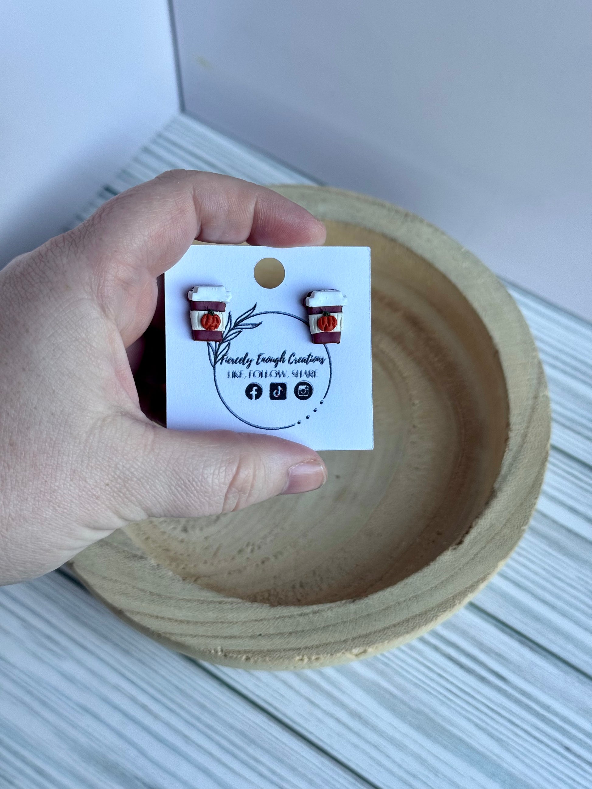 Celebrate your love for coffee and fall with these handmade Pumpkin Spice clay earrings. Hypoallergenic and lightweight, they offer comfortable all-day wear while capturing the cozy essence of the season. Perfect for coffee enthusiasts looking to add a charming seasonal flair to their style.