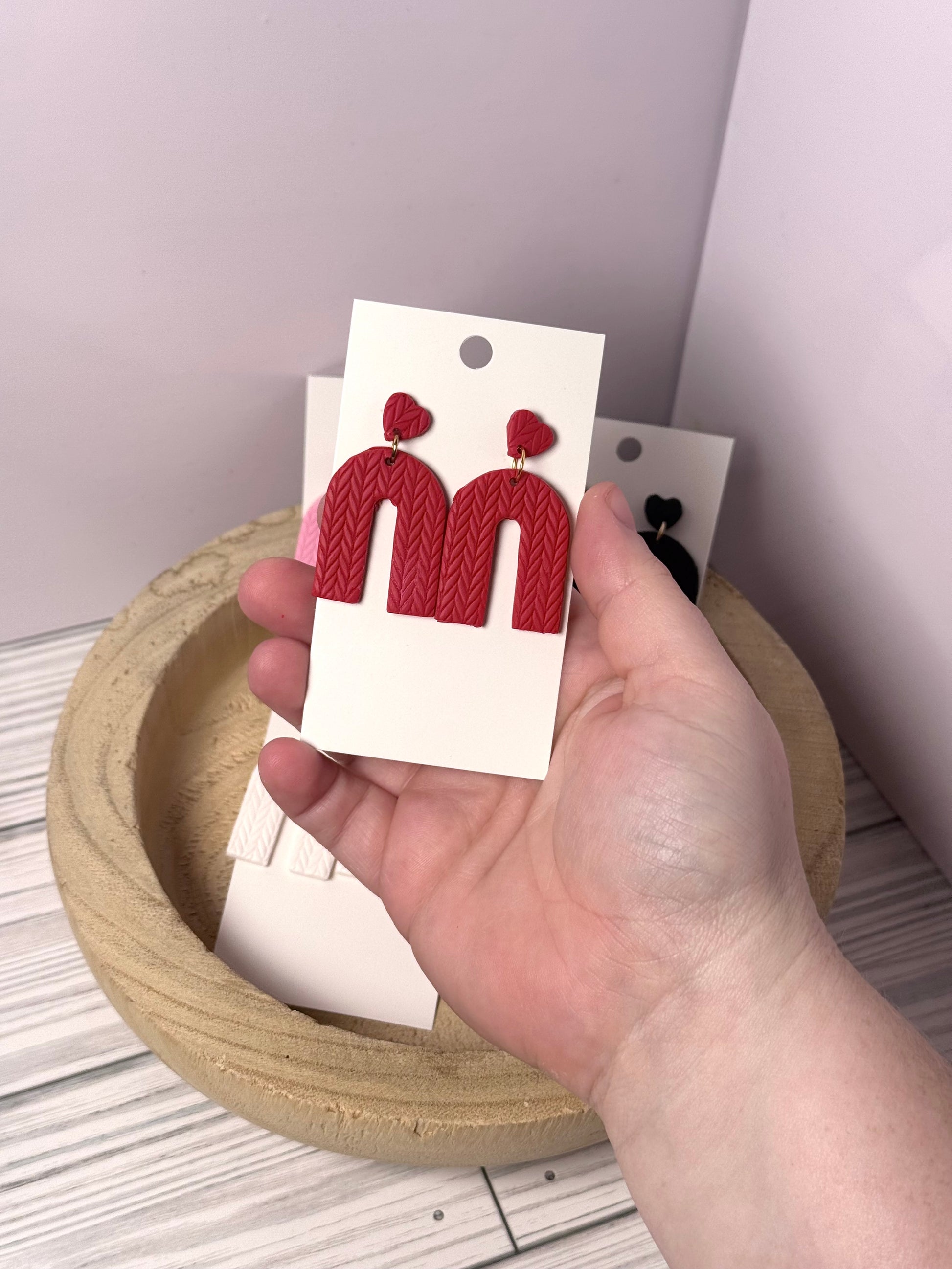 Celebrate love in a way that feels good—inside and out. These handmade Valentine's Arches are crafted with care from hypoallergenic clay, so you can wear them confidently without worry. Lightweight and comfortable for all-day wear, they're designed with sensitive ears in mind. Each pair is a unique creation that supports artisan craftsmanship while letting your personal style shine. Show yourself and those you care about the love they deserve with earrings that prioritize both beauty and comfort.